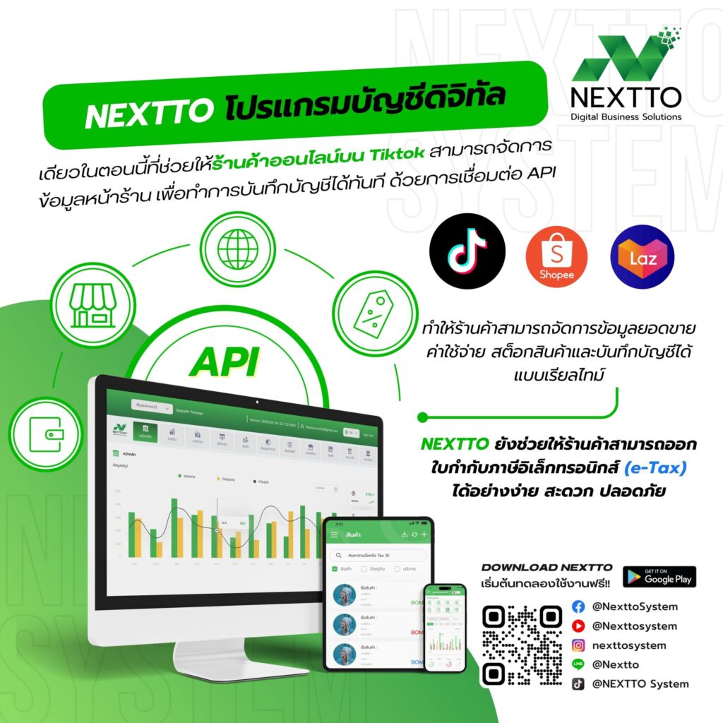 บทความ NEXTTO โปรแกรมบัญชีออนไลน์ที่ช่วยให้ร้านค้าออนไลน์บน TIKTOK จัดการตั้งแต่หน้าร้านจนถึงการบันทึกบัญชีอัตโนมัติทันที เมษายน 1, 2024