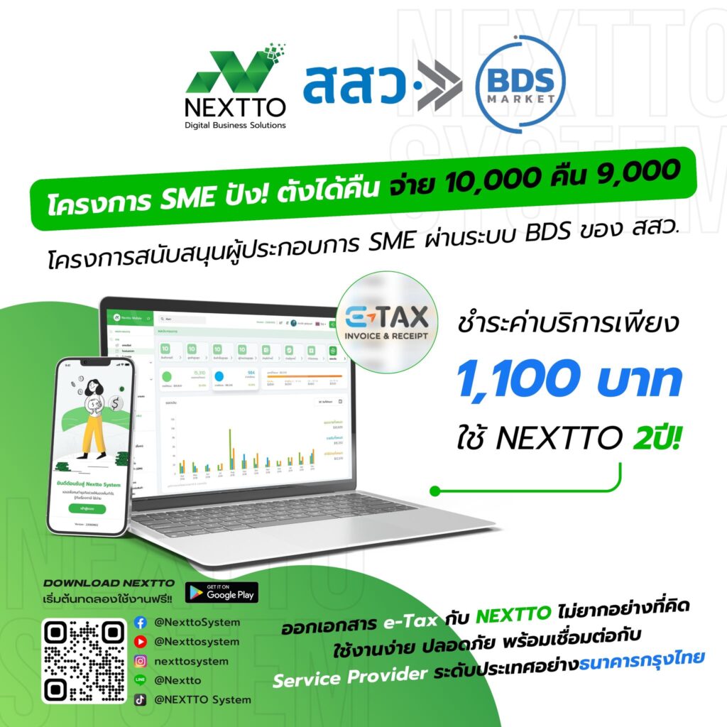 บทความ NEXTTO ร่วมโครงการ “SME ปัง! ตังได้คืน” จาก BDS และ สสว. ช่วยผู้ประกอบการอุดหนุนถึง 90 % เมษายน 1, 2024