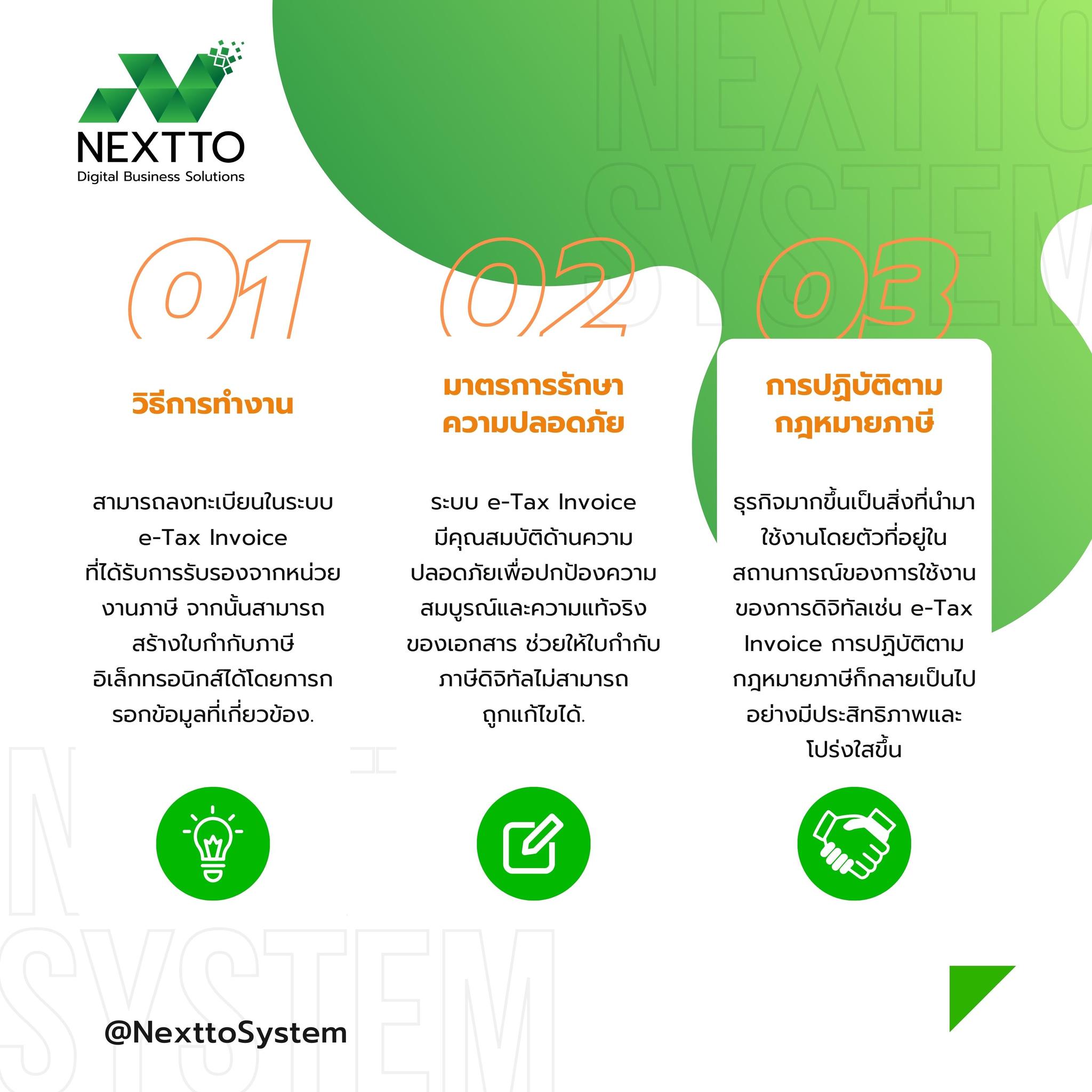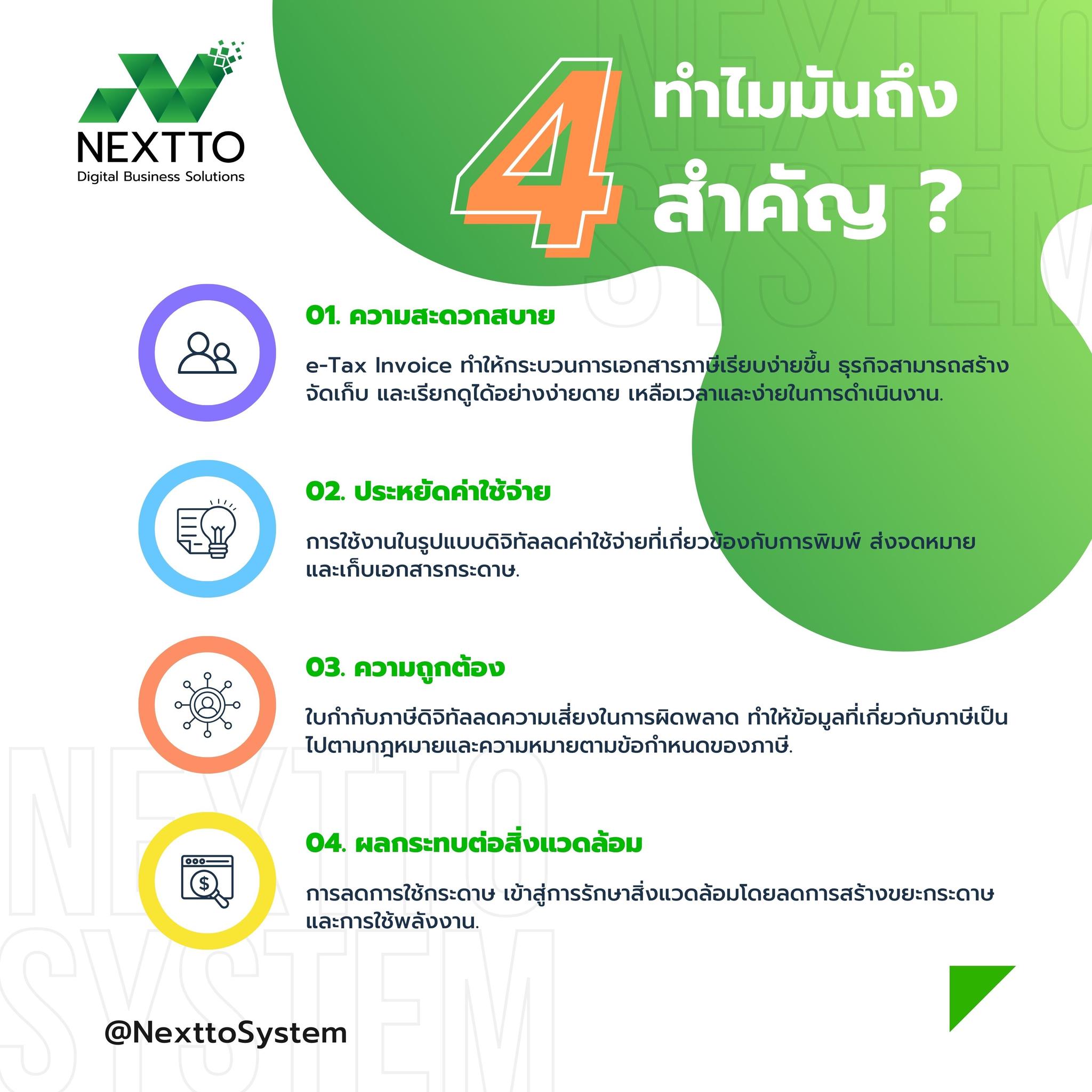 ด้วยฟังก์ชั่น Nextto Cloud ERP— ฟีเจอร์ที่ช่วยธุรกิจดิจิทัลในรูปแบบใหม่! ไม่เพียงรองรับ e-Tax ตามมาตรฐานกรมสรรพากรเท่านั้น แต่ยังสามารถเชื่อมต่อกับ PromptBiz ซึ่งเป็นระบบโอนเงินภาคธุรกิจขั้นสูง ตัวนี้ช่วยคุณลดต้นทุน ลดความผิดพลาด และเพิ่มโอกาสในการสร้างกำไรอีกด้วย
