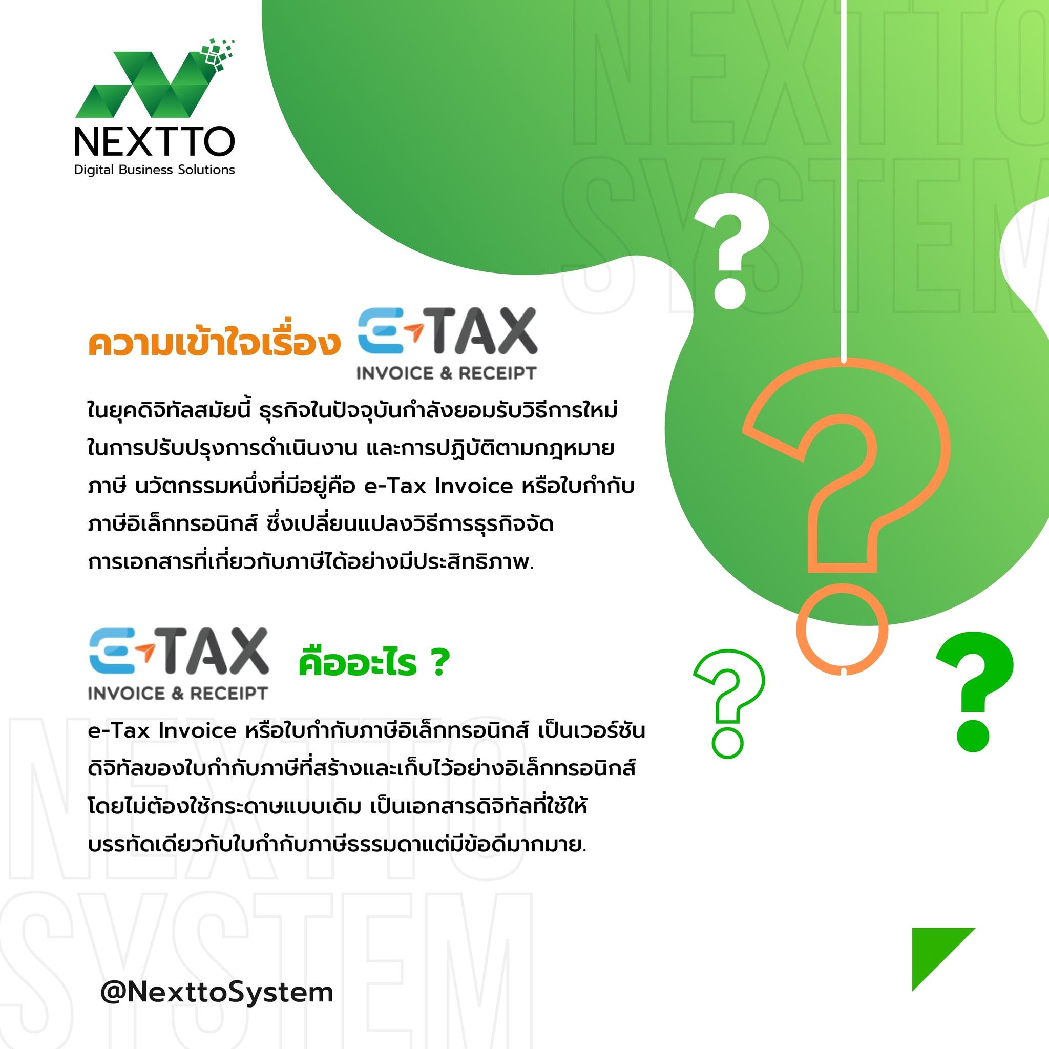📑 ความเข้าใจเรื่อง e-Tax Invoice : ในยุคดิจิทัลสมัยนี้ ธุรกิจในปัจจุบันกำลังยอมรับวิธีการใหม่ในการปรับปรุงการดำเนินงาน และการปฏิบัติตามกฎหมายภาษี นวัตกรรมหนึ่งที่มีอยู่คือ e-Tax Invoice หรือใบกำกับภาษีอิเล็กทรอนิกส์ ซึ่งเปลี่ยนแปลงวิธีการธุรกิจจัดการเอกสารที่เกี่ยวกับภาษีได้อย่างมีประสิทธิภาพ.